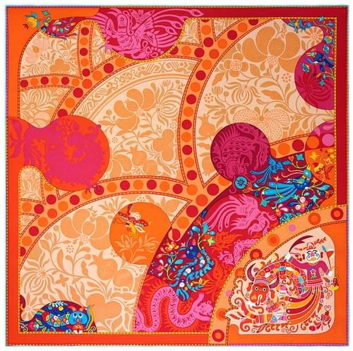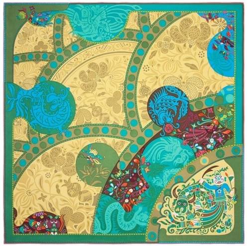 東洋美の手描き意匠 シルクスカーフ 「苗嶺飛歌」系列 作品番号A011 4色