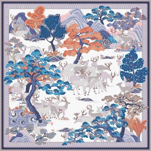 シルクスカーフ 「福鹿」系列 清華大学監修した絹のスカーフ 作品番号A022