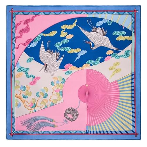 シルクスカーフ 「鶴舞」系列 清華大学監修した絹のスカーフ 作品番号A024