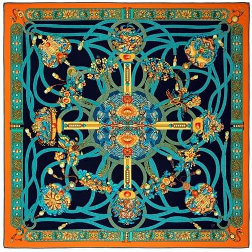 「玲瓏点翠」系列 作品番号A033 シルクスカーフ Scarf シルク100%