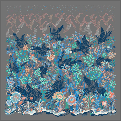 シルクスカーフ 「苗の鳥」系列 清華大学監修した絹のスカーフ 作品番号A044