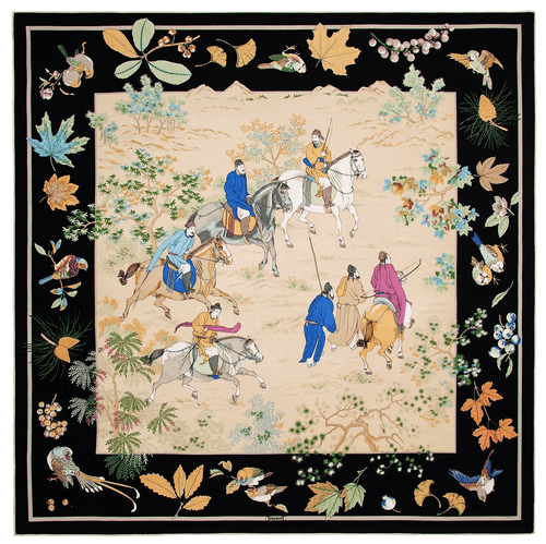 シルクスカーフ 「遊騎図」系列 清華大学監修した絹のスカーフ 作品番号A045